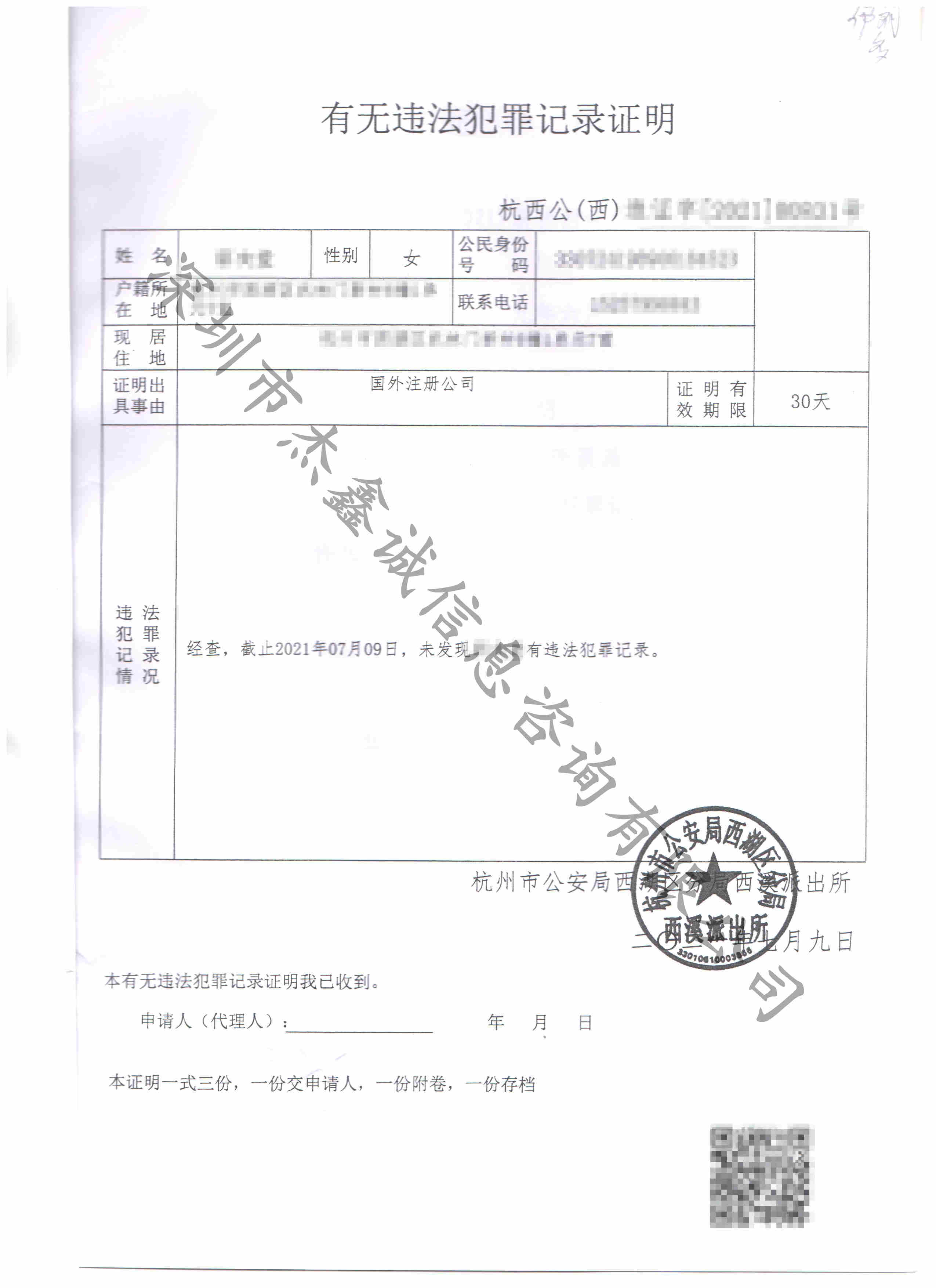 一:无犯罪记录证明: