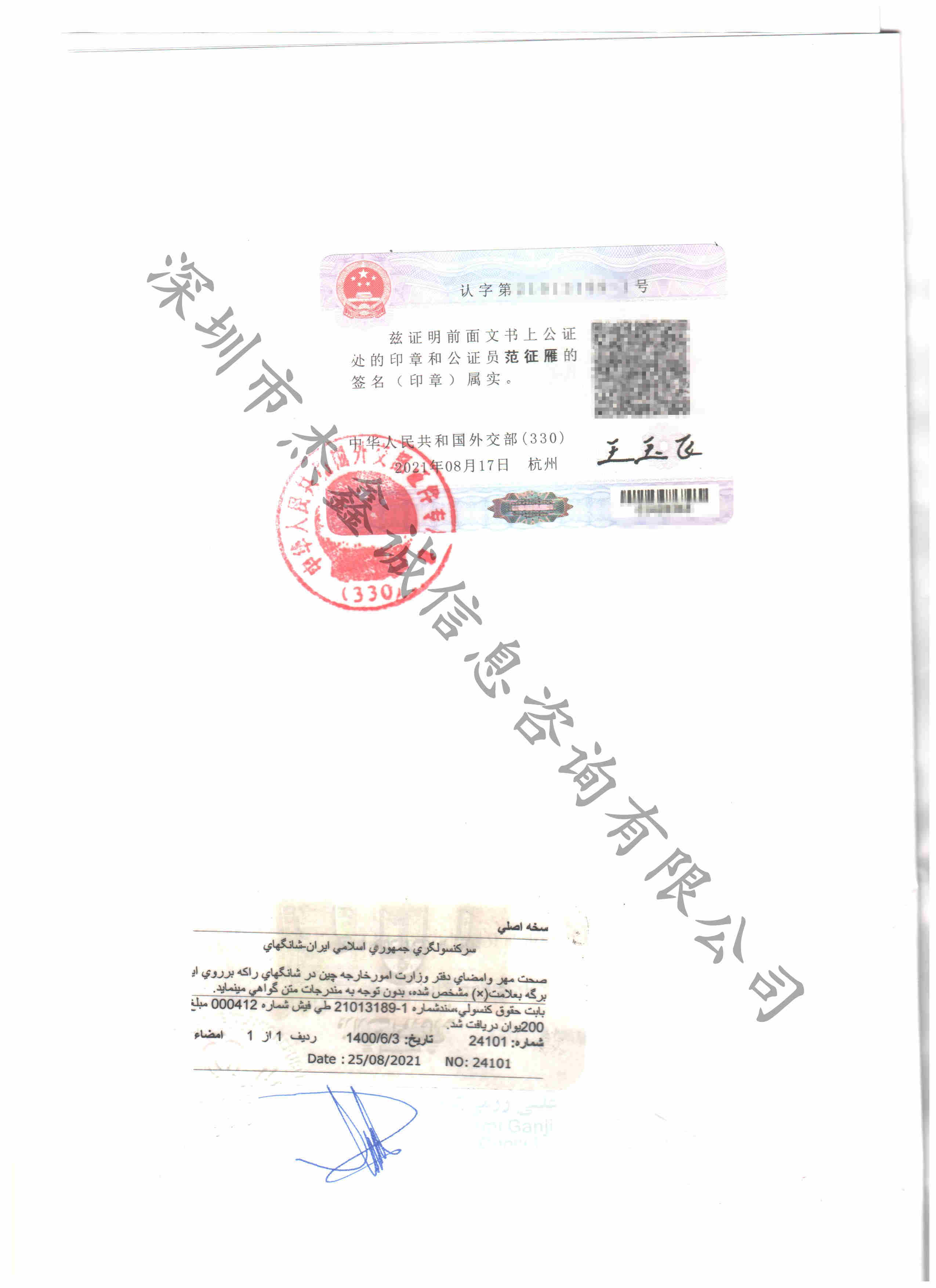 三:外事办及伊朗使馆认证