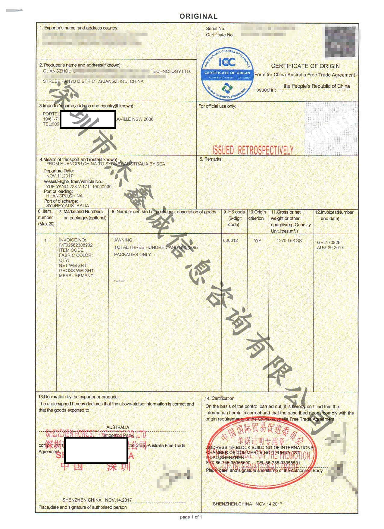 澳大利亚优惠产地证FORM A(贸促会出具)